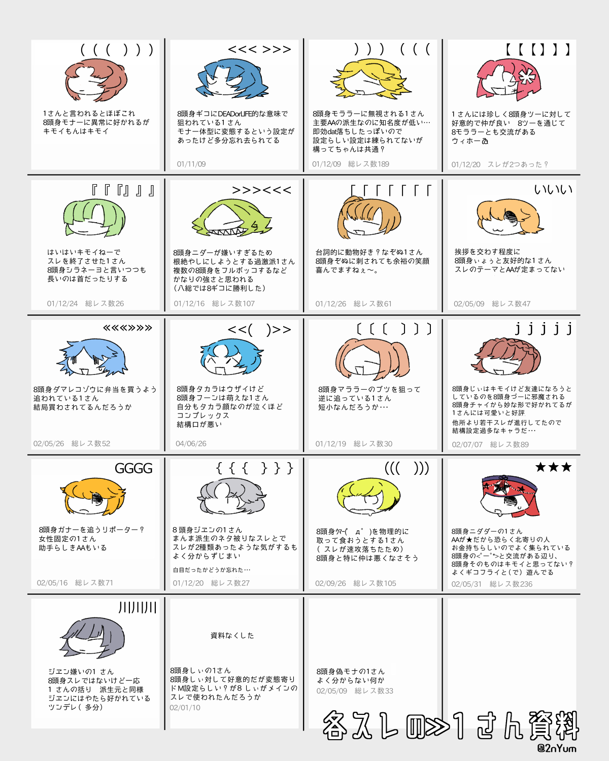 各8頭身スレを元にスレの作成日と総コメ数、各1さんの考察?をまとめたもの